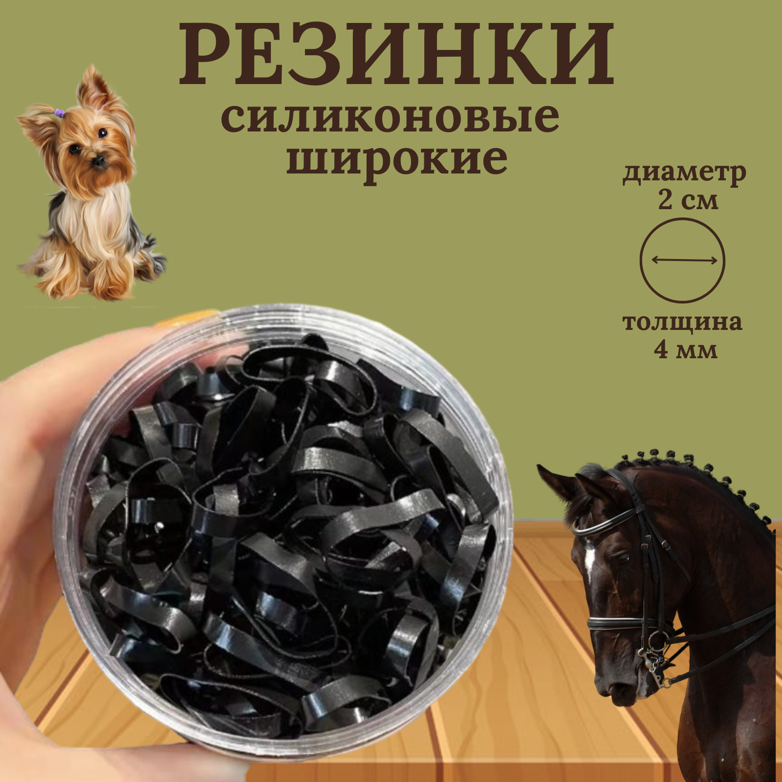 Эти специальные резинки изготовлены из силикона. Они обладают исключительной прочностью и отличной упругостью, что делает их идеальным аксессуаром для вашего питомца . Эти резинки широкие, что упрощает их использование и позволяет вам легко создавать разнообразные прически. С помощью этих силиконовых резинок, вы сможете быстро и надежно заплести гриву во время соревнований или для повседневного использования. Их уникальный дизайн гарантирует, что они не оставят следов на волосах и легко снимаются после использования. Эти резинки также прекрасно тянутся, что делает их удобными в применении. Они долговечны и экономичны, поскольку их можно использовать многократно.