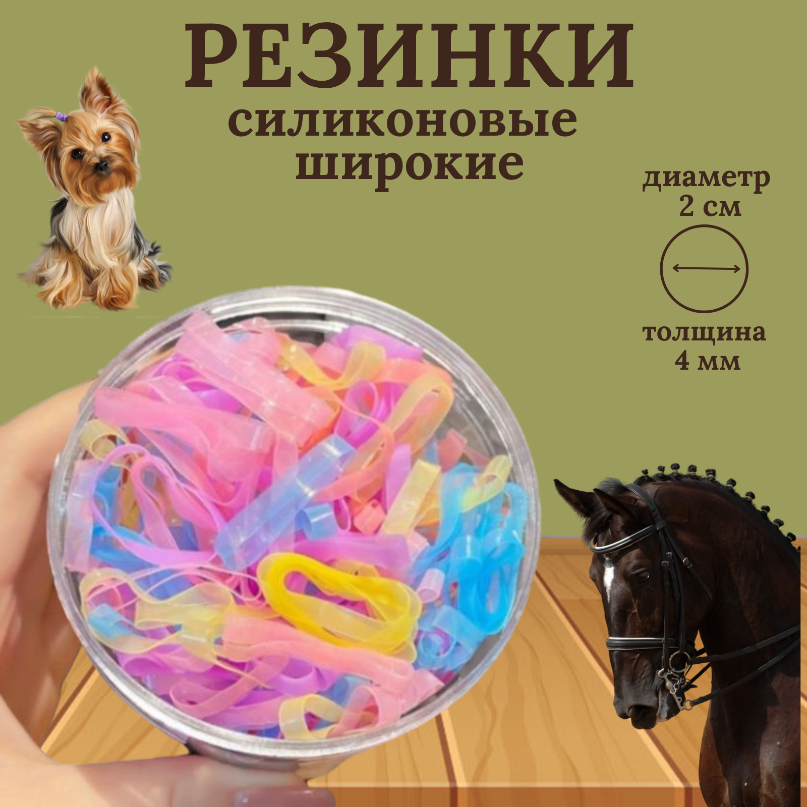 Эти специальные резинки изготовлены из силикона. Они обладают исключительной прочностью и отличной упругостью, что делает их идеальным аксессуаром для вашего питомца . Эти резинки широкие, что упрощает их использование и позволяет вам легко создавать разнообразные прически. С помощью этих силиконовых резинок, вы сможете быстро и надежно заплести гриву во время соревнований или для повседневного использования. Их уникальный дизайн гарантирует, что они не оставят следов на волосах и легко снимаются после использования. Эти резинки также прекрасно тянутся, что делает их удобными в применении. Они долговечны и экономичны, поскольку их можно использовать многократно.