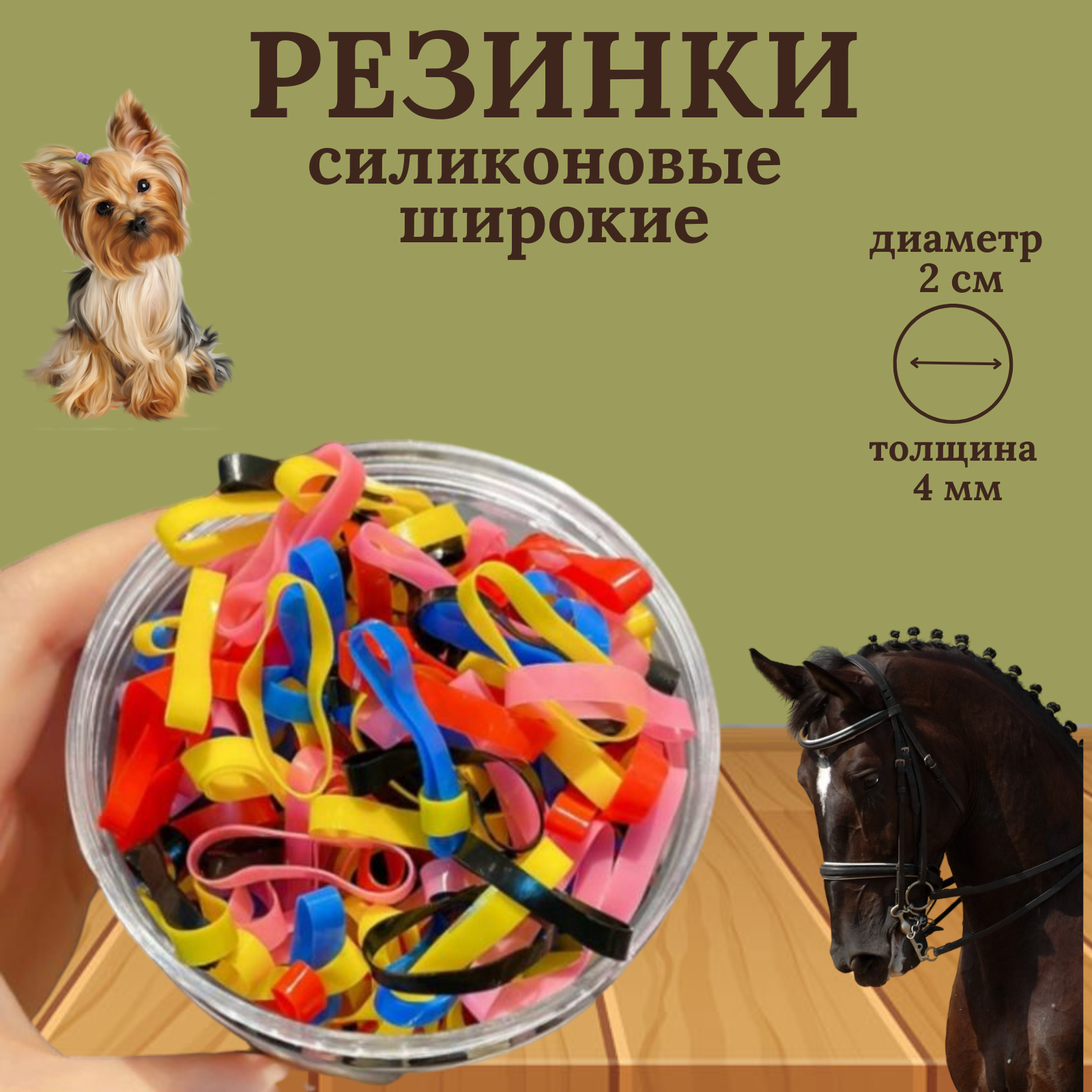 Эти специальные резинки изготовлены из силикона. Они обладают исключительной прочностью и отличной упругостью, что делает их идеальным аксессуаром для вашего питомца . Эти резинки широкие, что упрощает их использование и позволяет вам легко создавать разнообразные прически. С помощью этих силиконовых резинок, вы сможете быстро и надежно заплести гриву во время соревнований или для повседневного использования. Их уникальный дизайн гарантирует, что они не оставят следов на волосах и легко снимаются после использования. Эти резинки также прекрасно тянутся, что делает их удобными в применении. Они долговечны и экономичны, поскольку их можно использовать многократно.